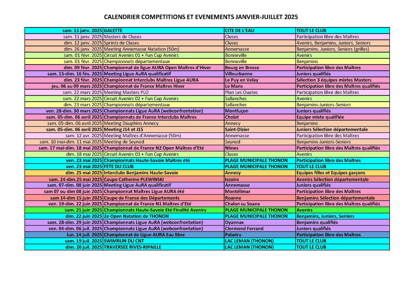 Nous demandons à tous nos nageurs de porter au minimum le T-shirt et le bonnet du Club lors des compétitions.