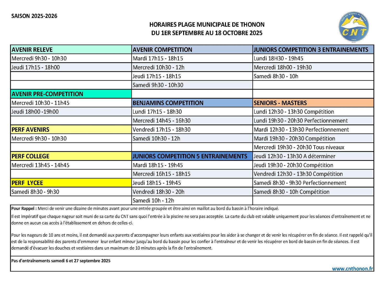 Le Club des Nageurs de Thonon propose des activités toute l’année, de septembre à août, sur les 2 sites de la Plage municipale de Thonon (mai-août) et la Cité de l’eau de Publier (septembre-avril).